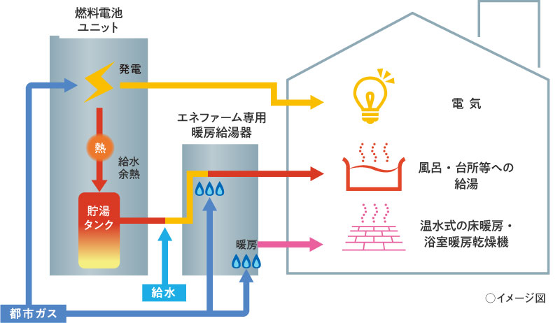 エネファーム専用暖房給湯器を組み合わせた独自のシステムです。