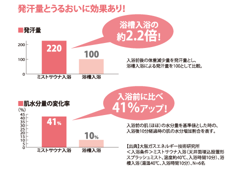 条件 : ミストサウナ入浴=室温40℃、10分間/浴槽入浴=湯温40℃、10分間