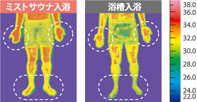 ミストサウナ入浴は、カラダの深部まで暖めます。芯から手足の先まで暖かさが持続しやすい特徴があります。