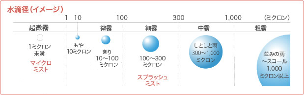 目に見える霧状のスプラッシュミスト(100~300ミクロン)。ミストをたっぷり浴びることで発汗や血行を促進します。